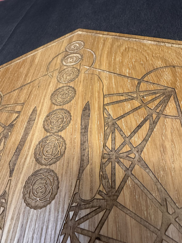 Laser cut from 6mm oak veneer—known for its strength, wisdom, and resistance—this handmade board is both meaningful and durable. Each piece is made to order in sizes from 10 to 14 inches, with larger custom sizes up to 23 inches available upon request.
