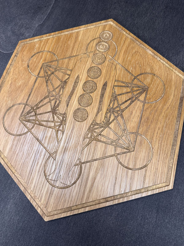 Bring balance, harmony, and deep spiritual connection to your energy work with this beautifully crafted Metatron’s Cube Chakra Grid Board. Designed in a striking hexagonal shape, this laser-engraved board features the sacred geometry of Metatron’s Cube aligned with chakra energy points, making it a powerful tool for chakra healing, crystal grids, and distance energy work.